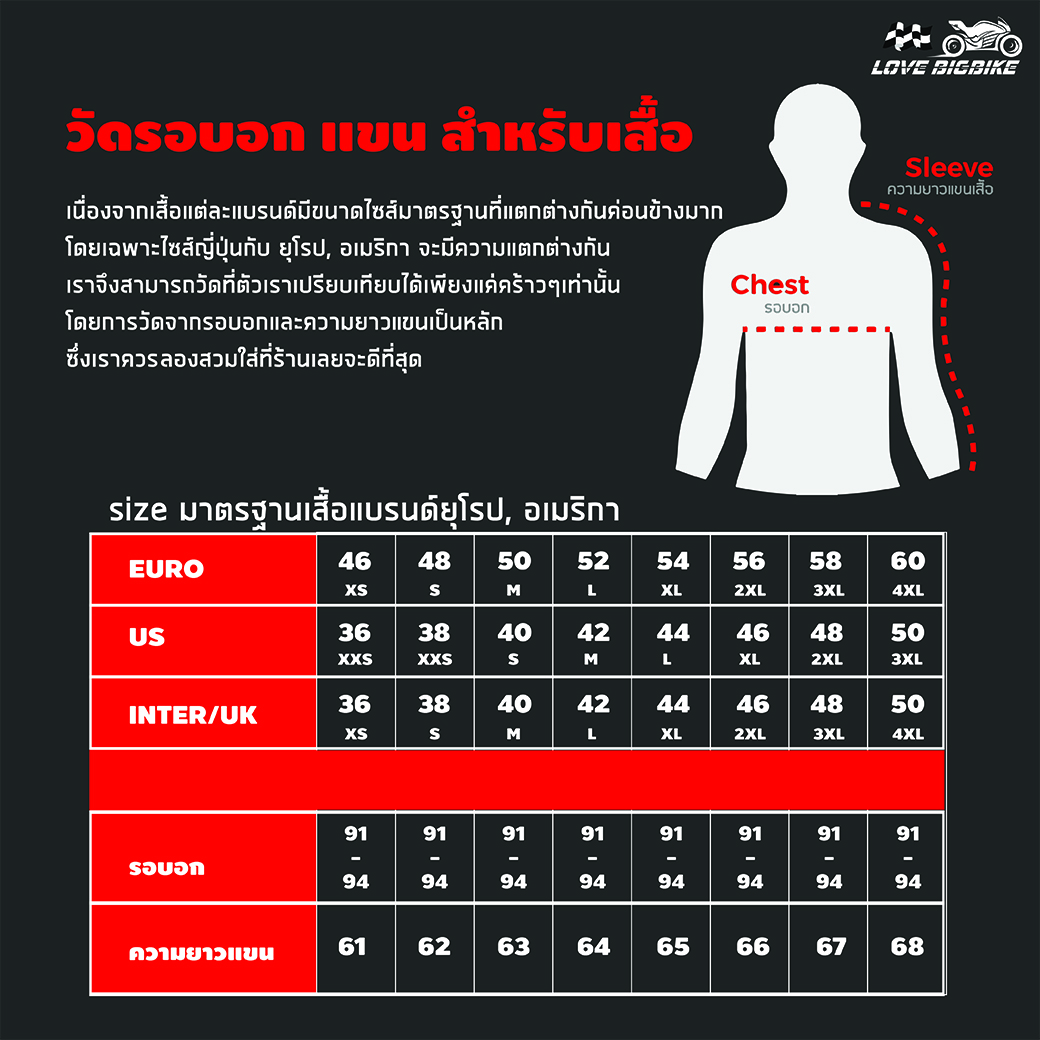 ** Size มาตรฐานเสื้อแบรนด์ยุโรป, อเมริกา **