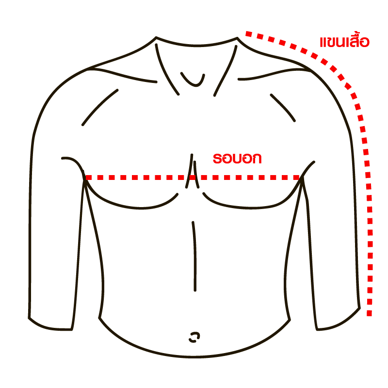 | รอบอก | 91-94 | 95-98 | 99-102 | 103-106 | 107-110 | 111-114 | 115-118 | 119-122 |