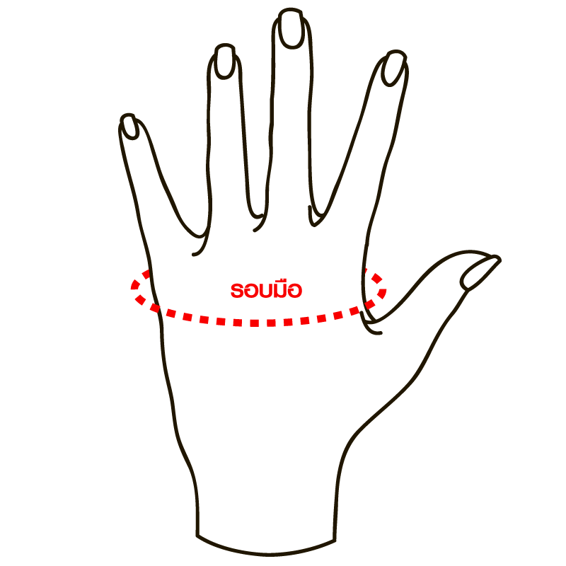วัดรอบมือ ไม่รวมนิ้วโป้ง