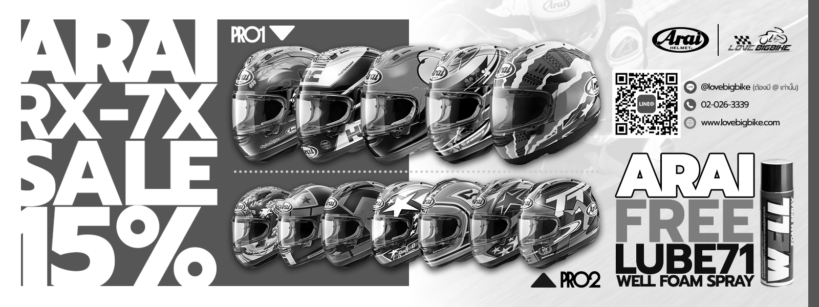 ร้าน Love big bike จัดโปรโมชั่น ลดราคาหมวก Arai 15%